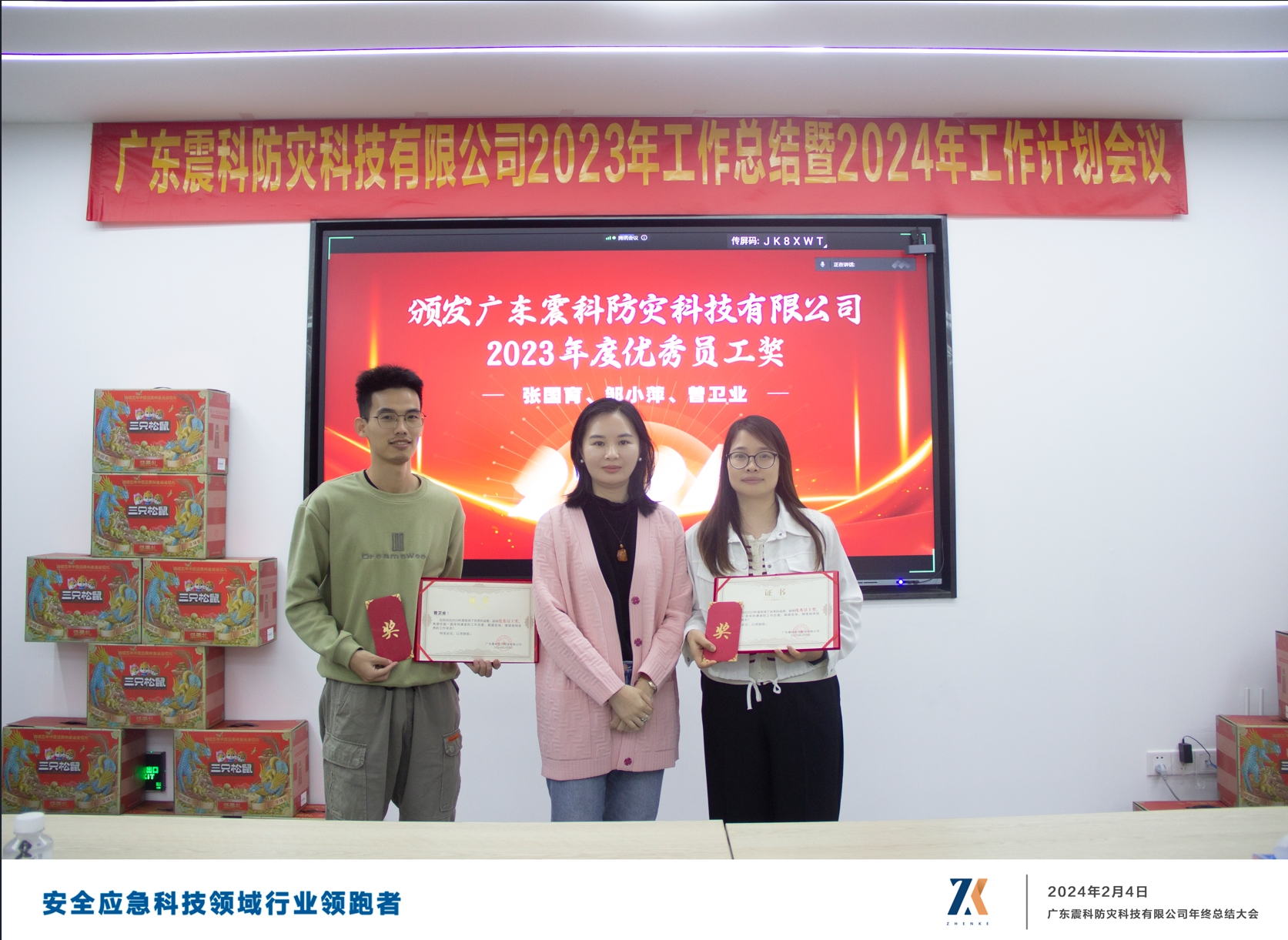 2024年2月4日,广东震科在会议室召开2023年度工作总结大会。此次大会公司领导与全体员工共同回顾了过去一年的工作成果,探讨未来发展策略,为新一年的工作奠定了坚实基础。