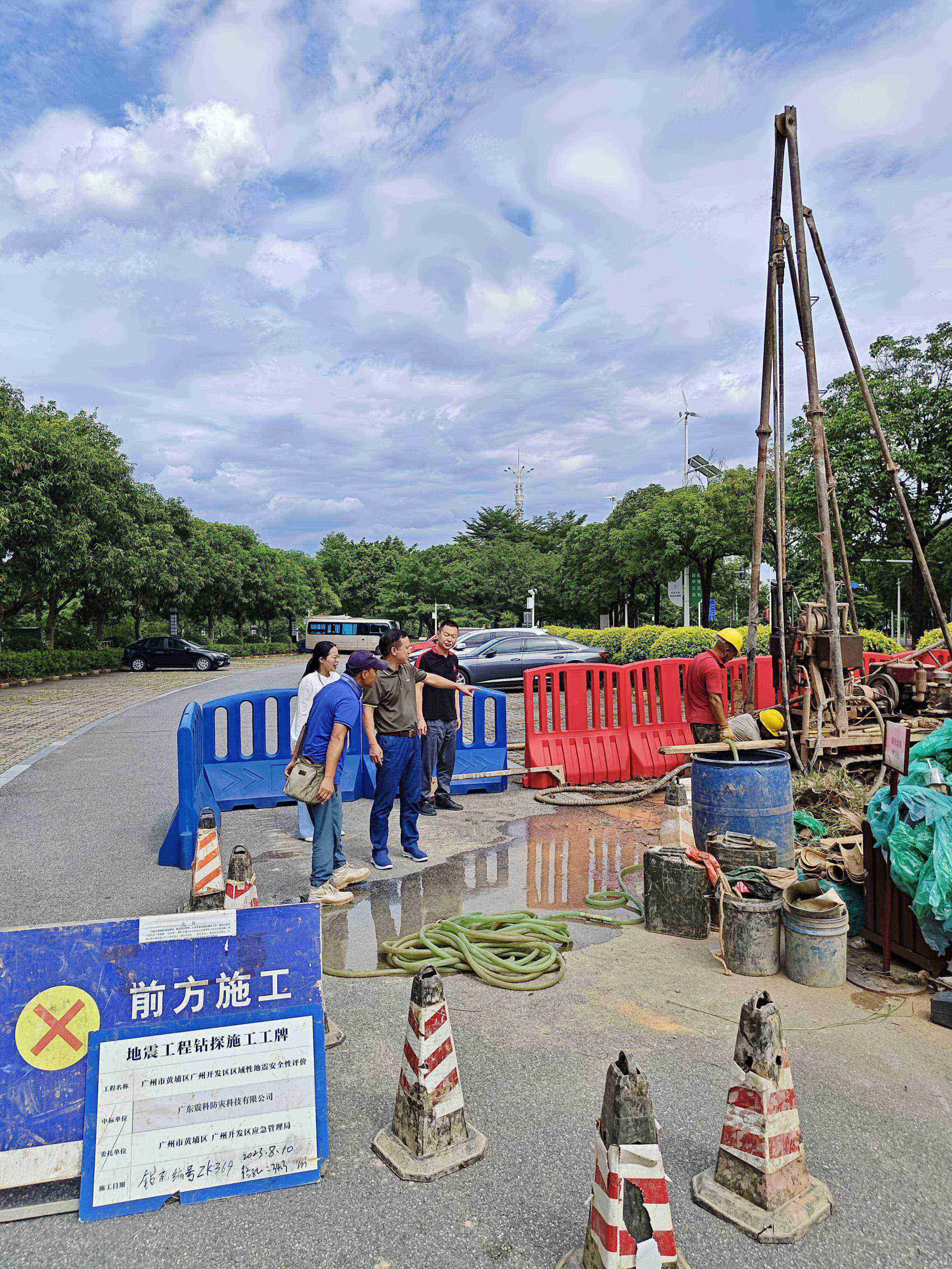 2023年8月11日下午,广州市黄埔区应急局三级调研员刘文华,广州市黄浦区应急局综合减灾处处长韦莲玲,亲临生物岛现场指导工作。广东震科防灾科技有限公司安评技术人员进行现场汇报工作。现场工作按照计划正常施工,项目有序开展中。