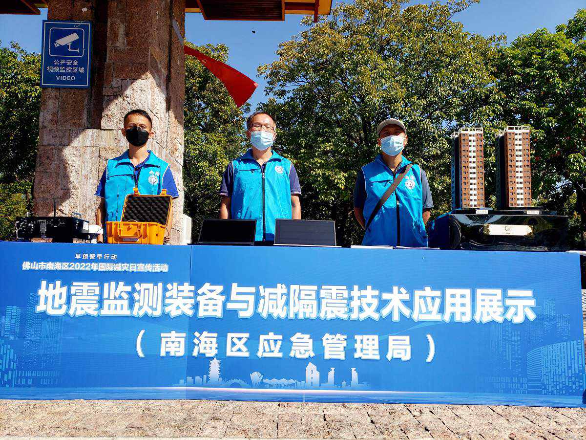 2022月10月,广东震科防灾科技有限公司在佛山市南海区千灯湖参加“佛山市南海区2022年国际减灾日宣传活动”,我司展示了地震监测装备与减隔震技术应用。