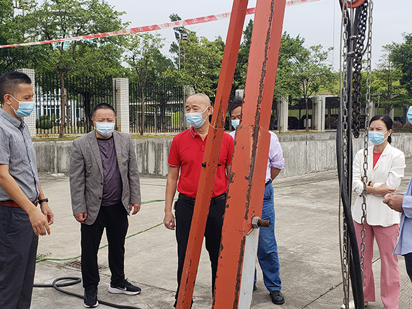 2022月10月,佛山市地震局局长王荣初莅临广东震科防灾科技有限公司三水深井站项目和三水芦苞站项目检查设备安装工作。